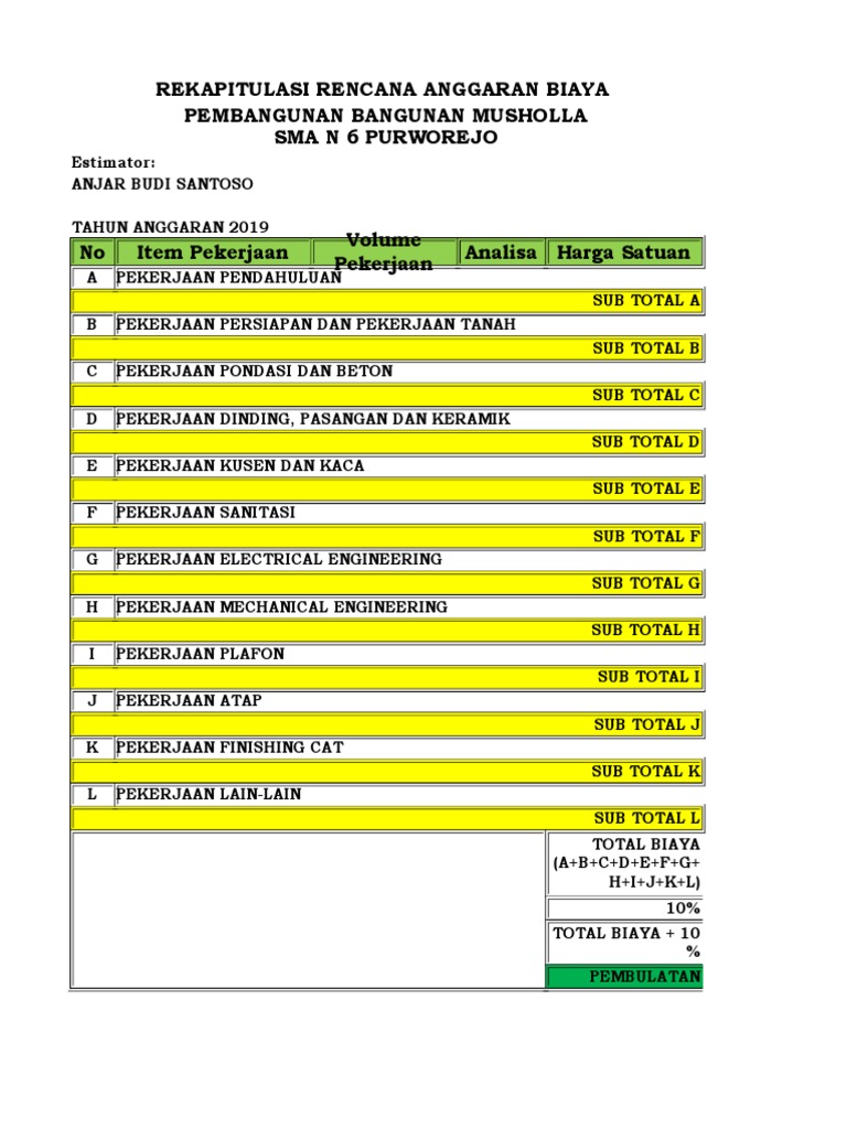 Rencana Anggaran Biaya Musholla Sma N 6 Purworejo Pdf