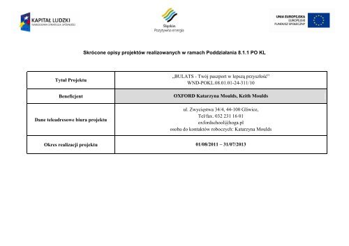 8 1 1 Opisy Projekta W Otwarte 1 Efs Wup Katowice